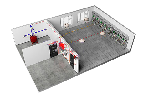 Идеально подходит для помещений, в которых работает электрооборудование. Распыляя порошок под воздействием газа, происходит блокирование доступа кислорода к очагу возгорания. Зона контроля распределяется на индивидуальные шлейфы, при помощи этого можно оперативно определить на каком участке случилось возгорание.